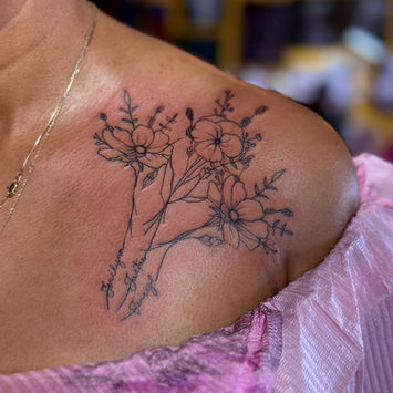 Alexis has been apprenticing for over a year, and has recently joined the R&R crew in 2025. She has been drawing her whole life specializing in pencil realism pieces. She also enjoys doing: lettering, numerals, stipple work, grungy spooky designs. She wants to get into fine-line as well as realism pieces eventually. If you're looking for a more feminine touch, she's your gal!